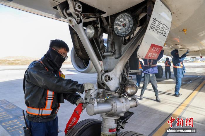 11月26日,青海海东,西宁曹家堡邦际机场机务培修员启铺冬航季设置换季维保,齐力保证航班遨游飞翔平安,保证下本机场下效运转。图为平易近航机务培修职员装配前轮转直销。中新社记者 薛蒂 摄